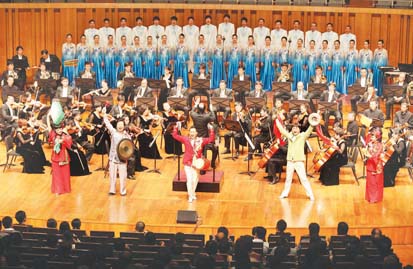 10月20日晚,典雅莊重的國(guó)家大劇院音樂(lè)廳第一次唱響安徽泗州戲婉轉(zhuǎn)抒情的旋律。由安徽省泗州戲劇院、安徽交響樂(lè)團(tuán)傾力打造的泗州戲交響清唱?jiǎng) 睹ㄞI》隆重上演。