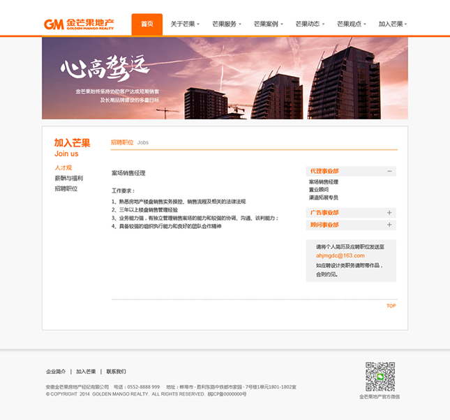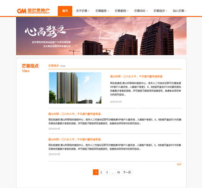 金芒果基于對中國房地產(chǎn)的執(zhí)著追求,憑借對市場營銷的激情創(chuàng)新,以完全經(jīng)過市場檢驗的專家團(tuán)隊和對市場的敏銳天賦,大膽構(gòu)思、執(zhí)著實(shí)踐、激情專注、科學(xué)分析,贏得了業(yè)主的廣泛認(rèn)同和支持,并以優(yōu)異業(yè)績和服務(wù)質(zhì)量,被客戶譽(yù)為具實(shí)效、富激情、科學(xué)嚴(yán)謹(jǐn)?shù)膶I(yè)房地產(chǎn)服務(wù)商。